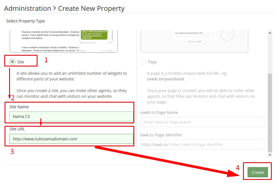 pada bagian Site Name dan Site URL isi sesuai nama dan url website anda, lalu klik Create.