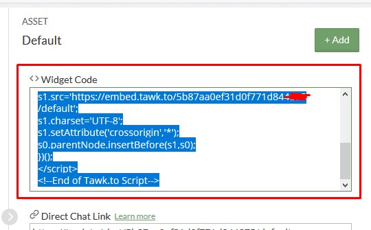 Silakan Copy/Salin Script Widget Live Chat Tawk.to Anda, untuk di tambakan ke website anda.